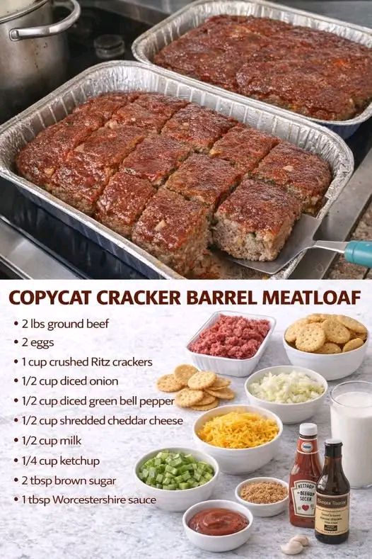 Ah, a Copycat Cracker Barrel Meatloaf—classic comfort food, rich, savory, and topped with that sweet tomato glaze. 🍽️ Here’s a detailed recipe to make it at home: