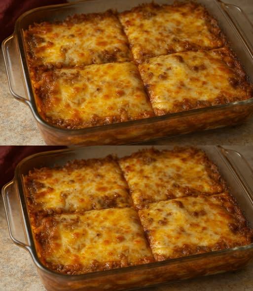 • Spoon beef mixture into a baking dish.