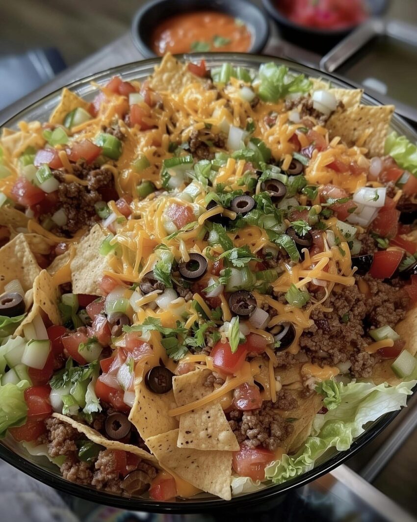Ohhh yes 🌮🧀 Doritos Taco Salad—crispy, cheesy, and packed with taco-flavored goodness. It’s a crunchy, colorful salad that’s perfect for lunch, dinner, or a party. Here’s a step-by-step recipe: