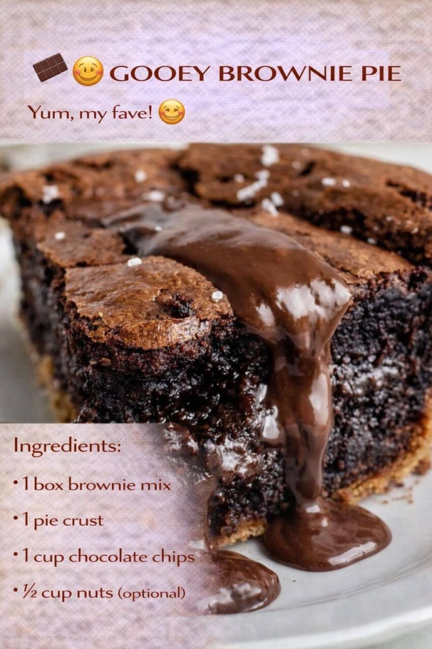 Ohhh yes 😍🍫 Gooey Brownie Pie—fudgy, decadent, and melts in your mouth. This is a rich, chocolate-forward dessert that hits all the gooey notes.