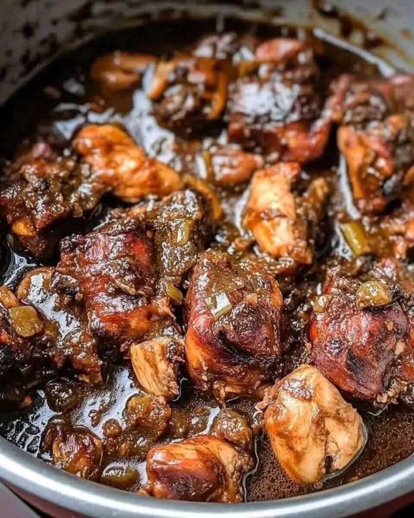 Here’s a rich, authentic-style recipe for Jamaican Brown Stew Chicken — deeply seasoned, browned, and simmered in a savory-sweet sauce with classic island flavors.