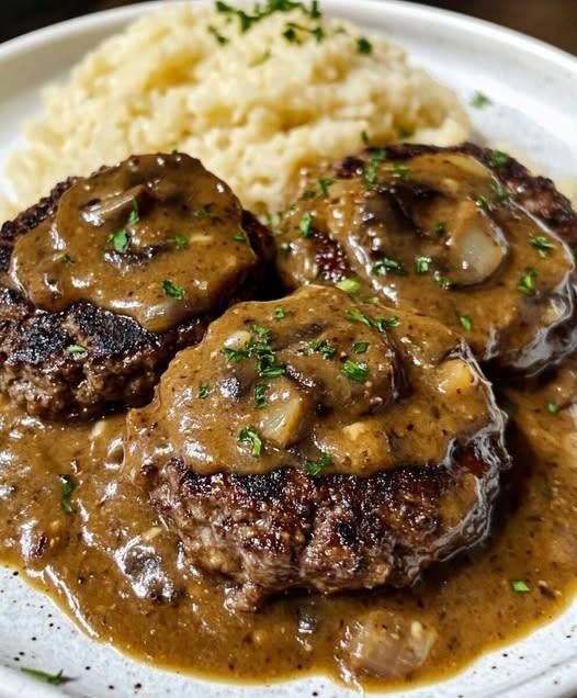 Here’s a classic Salisbury Steak with Onion Gravy 🍽️