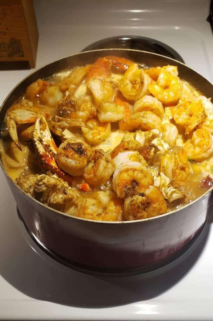 - Continue to simmer for about 5-7 minutes, until the seafood is fully cooked. The shrimp should turn pink and the mussels or clams should open up.