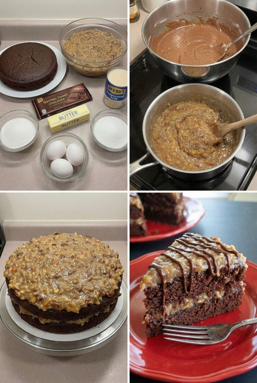 Here’s a detailed step-by-step guide to making a classic German Chocolate Cake with the rich coconut-pecan frosting:
