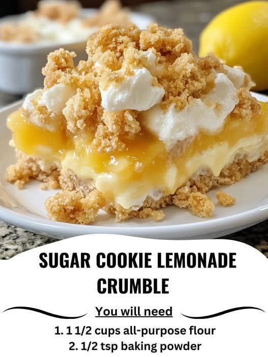 Bright, buttery, and perfect for spring or summer gatherings — this dessert combines soft sugar cookie dough with tangy lemon filling and a crumbly top.
